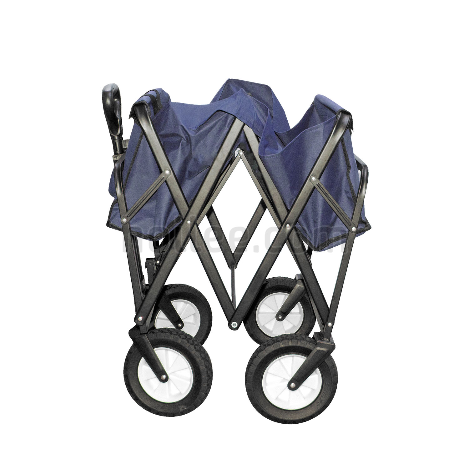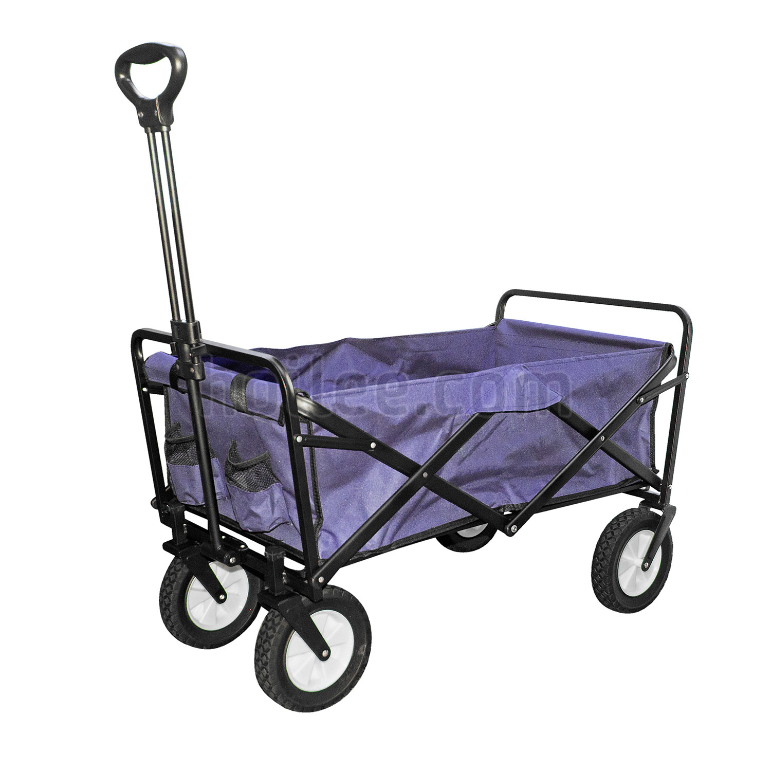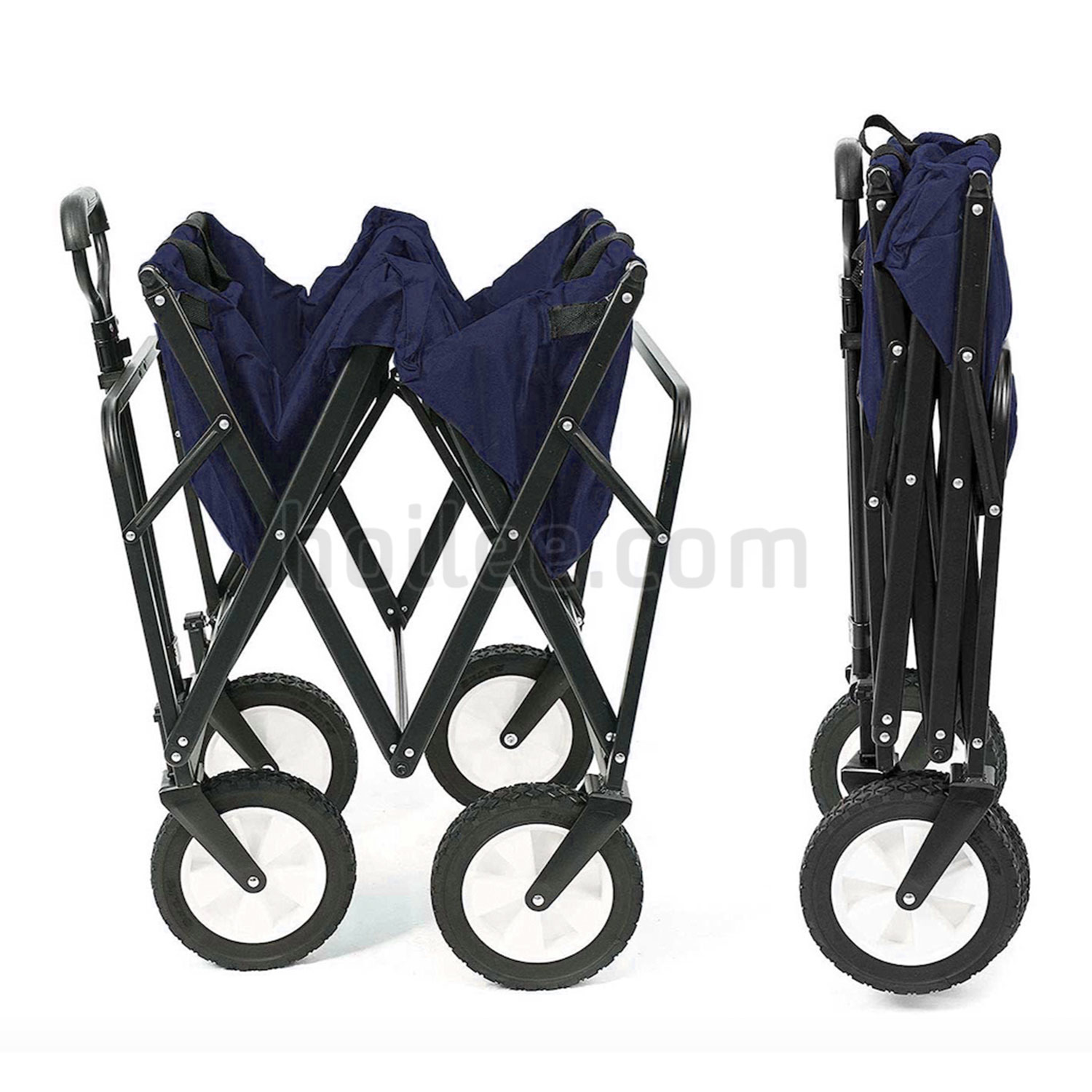 The large load folding wagon cart opens to approx 50.5 x 88.5 x 105cm. The collapsible utility wagon cart fold is 50.5 x 72 x 19.5cm. The ground to the top of the handle is 105cm". Two mesh cup holder beverages are safe and sound. Robust steel frame construction holds up to 220 pounds.