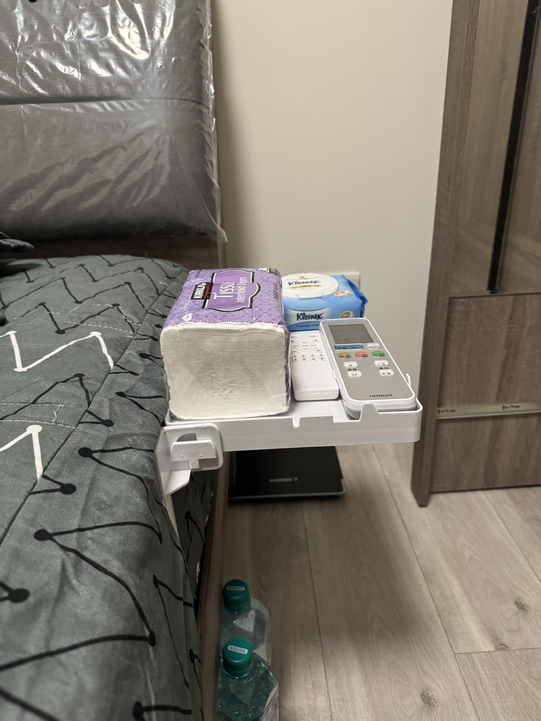 This foldable Bedside Table is our second-generation product, we make sure the safety, security, stability and very easy to fold up and fold down. Nowadays the house is very expensive, and it’s small, this item can be used instead of the expensive night stand.