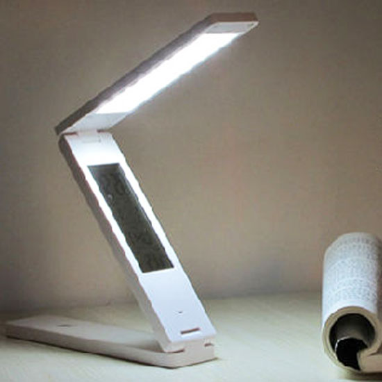 This desk lamp consumes only 1 watt of energy to deliver excellent brightness. It can be folded into a compact structure for easy carrying and storage. This desk lamp features an LCD display with multiple functions.