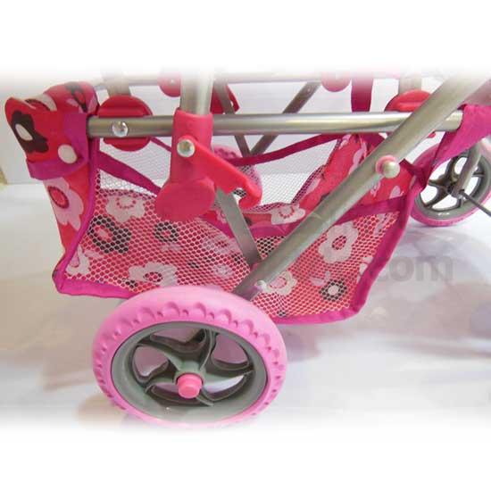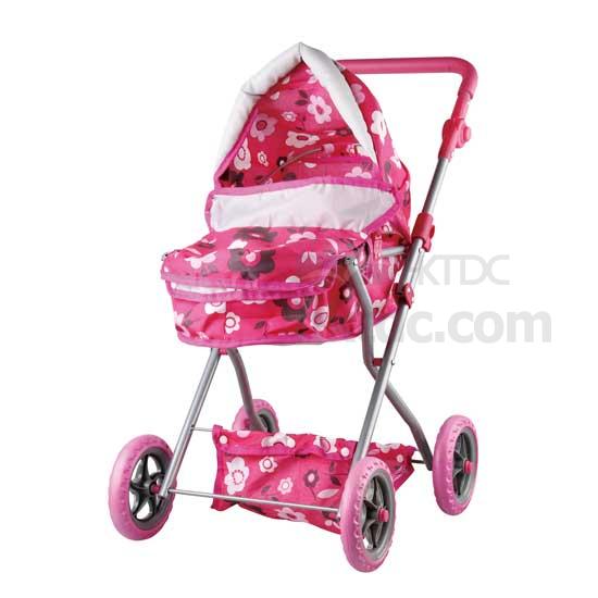 This finely manufactured baby pram is sturdily constructed for extended durability. The well-designed pram is fitted with large plastic wheels.