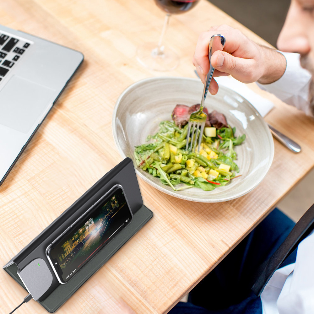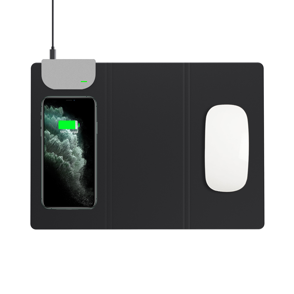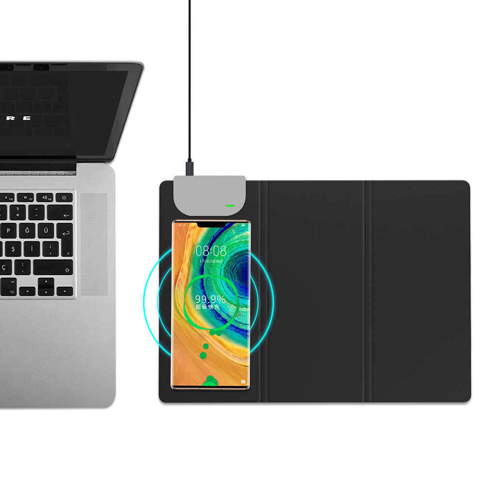 Folding Portable PU Leather Mouse Pad with Phone Wireless Charger for Office for Traveling