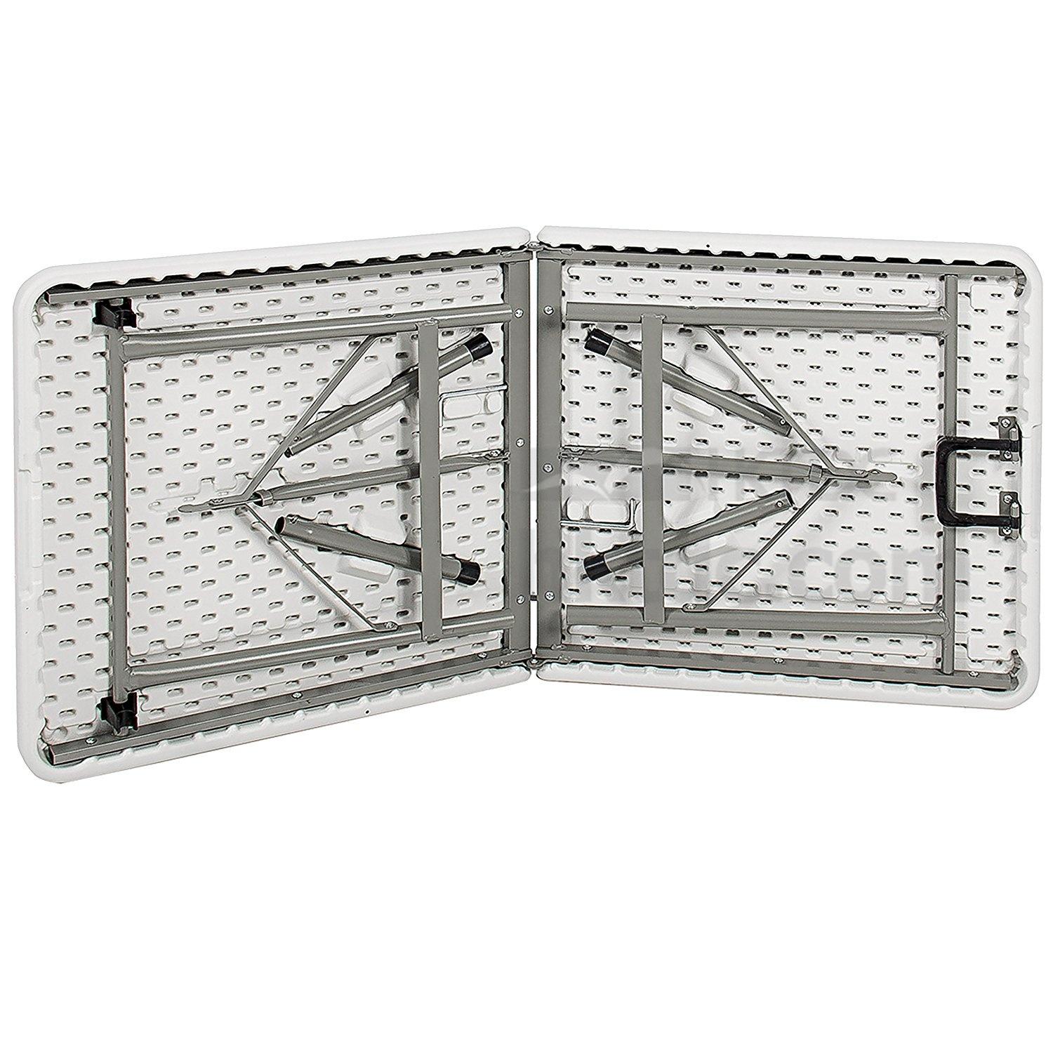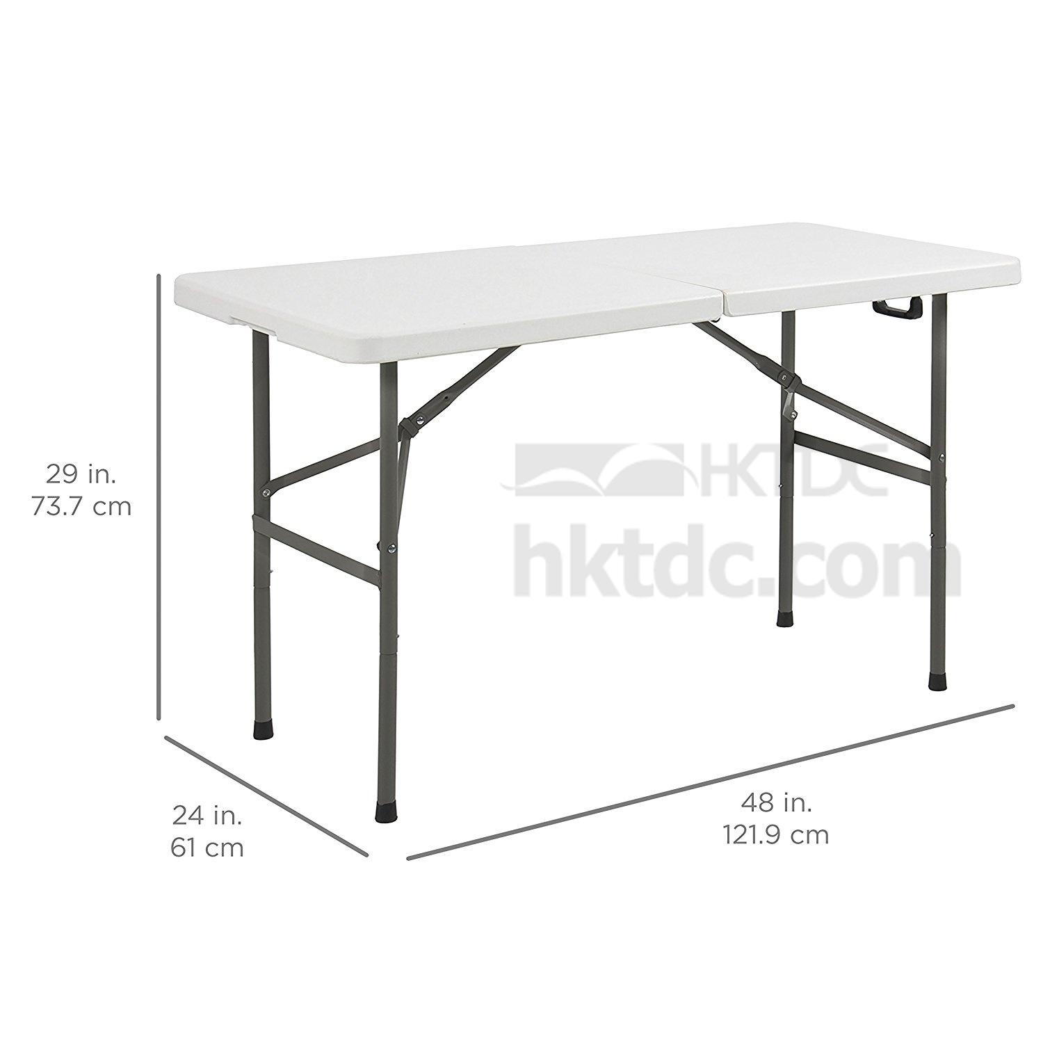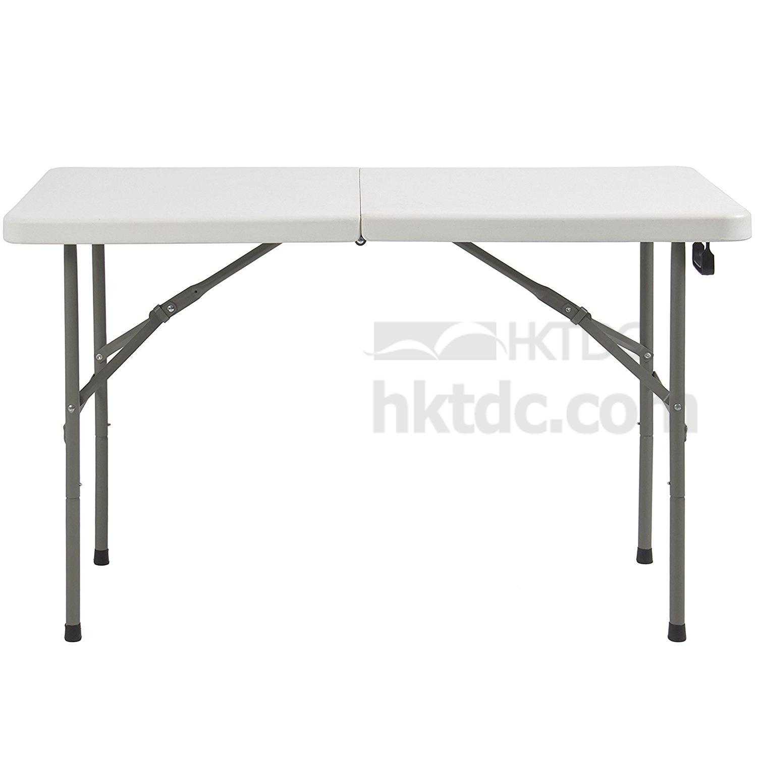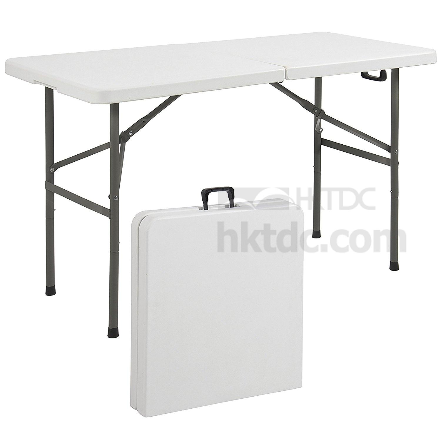 • Outdoor folding table is constructed of high-density polyethylene (HDPE) and steel, powder coated legs