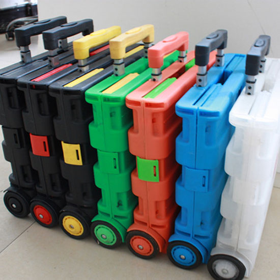 This is a folding cart that can be used to load some goods when you are going shopping. It can also place into the car tail box. The robust and rugged structure promises an extended service life.