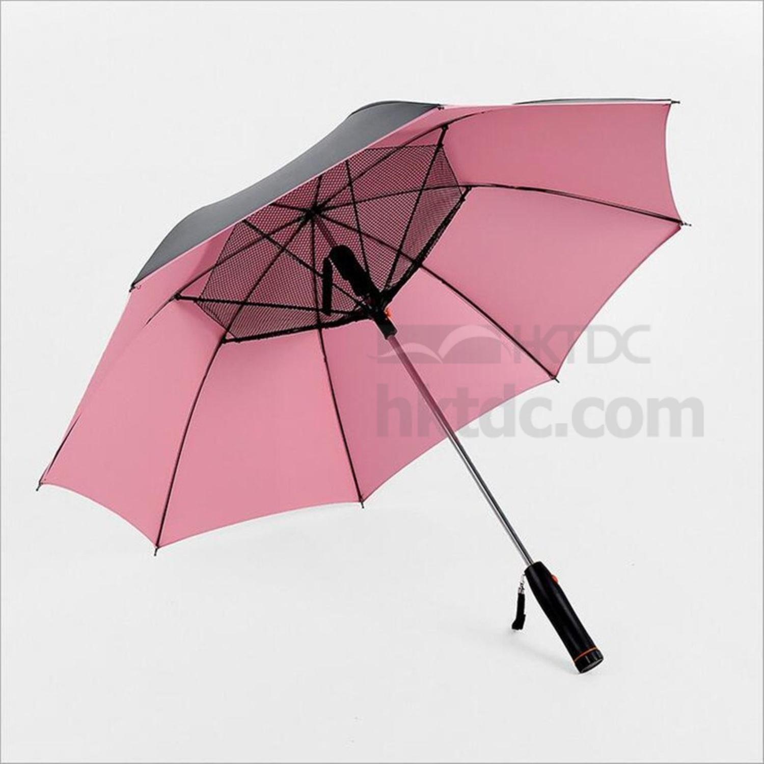 Anti-UV Sunny and Rainy Long-handle Folding Umbrella With Built-in Fan