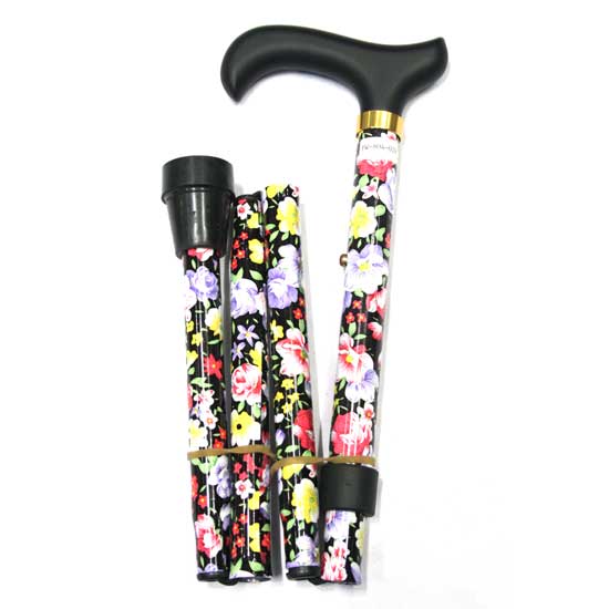 This folding walking stick flaunts a youthful style with its black handle and brightly colored flower pattern. Made with a folding design, this walking stick can be carried in your bag conveniently. Featuring a comfortable handle and durable construction, this walking stick is a reliable companion to your journeys.