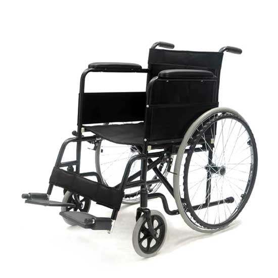 This is a wheelchair with powder coating steel frames and black steel skirt-guards. It is folded for easy storage and transport. The wheelchair also comes with sponge armrests for extra comfort.