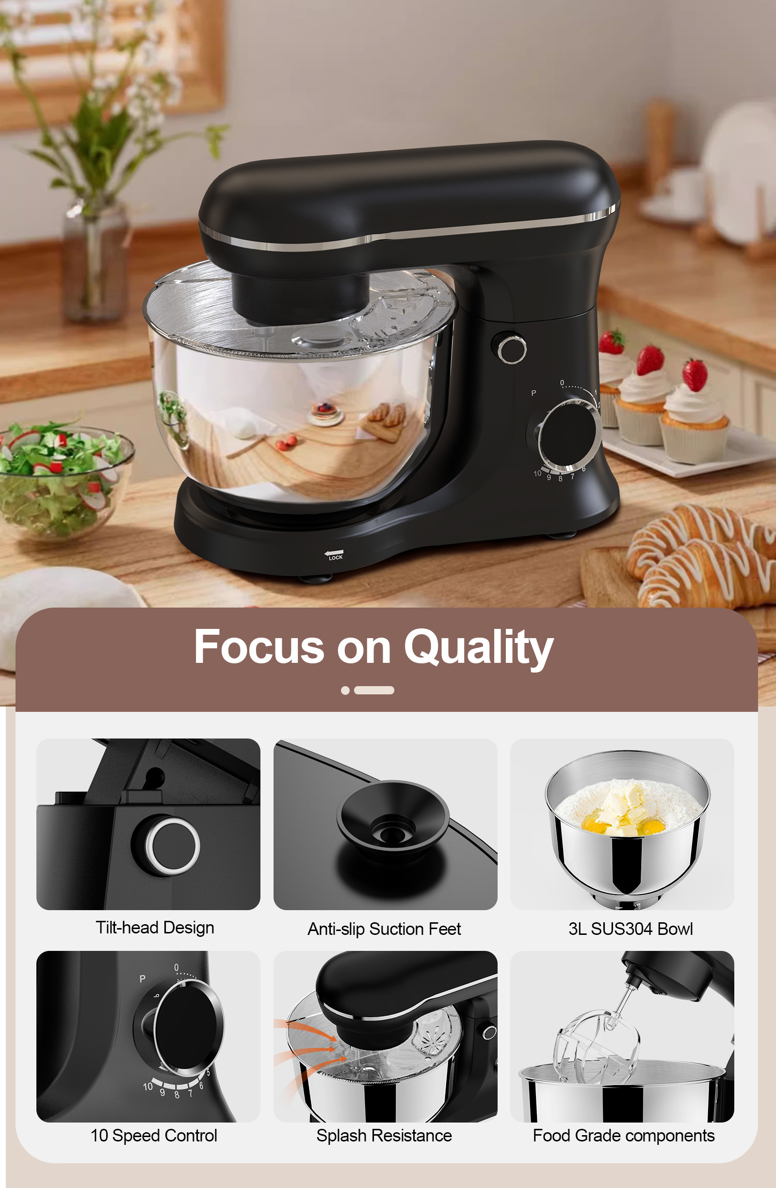 | Capacity | 4L SUS304 mixing bowl |