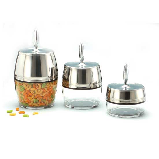 Displayed here is a canister designed for storing dehydrated food, ingredients and other kinds of food. The transparent casing allows the contents to be viewed easily. It is designed with a lid for keeping the food hygienic.