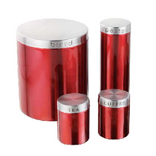 This displayed food container features a sleek cylindrical shape. It comes with a silvery lid for preventing dust from getting into the container. It is available in assorted sizes for storing assorted food, including pasta, tea, coffee powder, bread and so on.