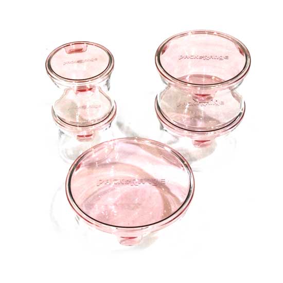 This is a 5-piece food container set in a round shape. The food container is finely made of glass for easy cleaning. The food container set is surely an ideal selection for household use.