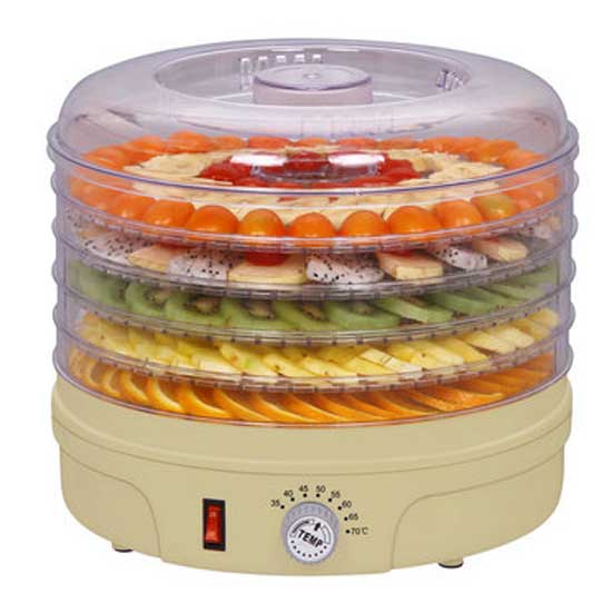 Photographed is a food dehydrator with a multi-tier design. The device helps to remove moisture from food to aid in its preservation. The food dehydrator employs a heat source and airflow to reduce the water contents of foods gradually.