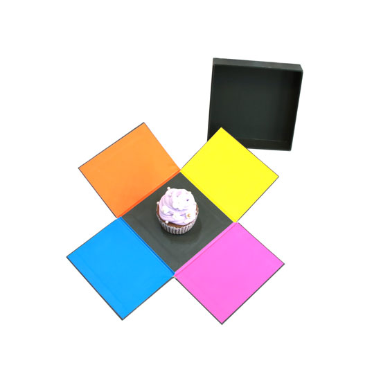 This food display box entices you with its multiple bright colors. The magnetic sides can be folded to form a lovely cube. Such interesting design is extremely popular among customers.
