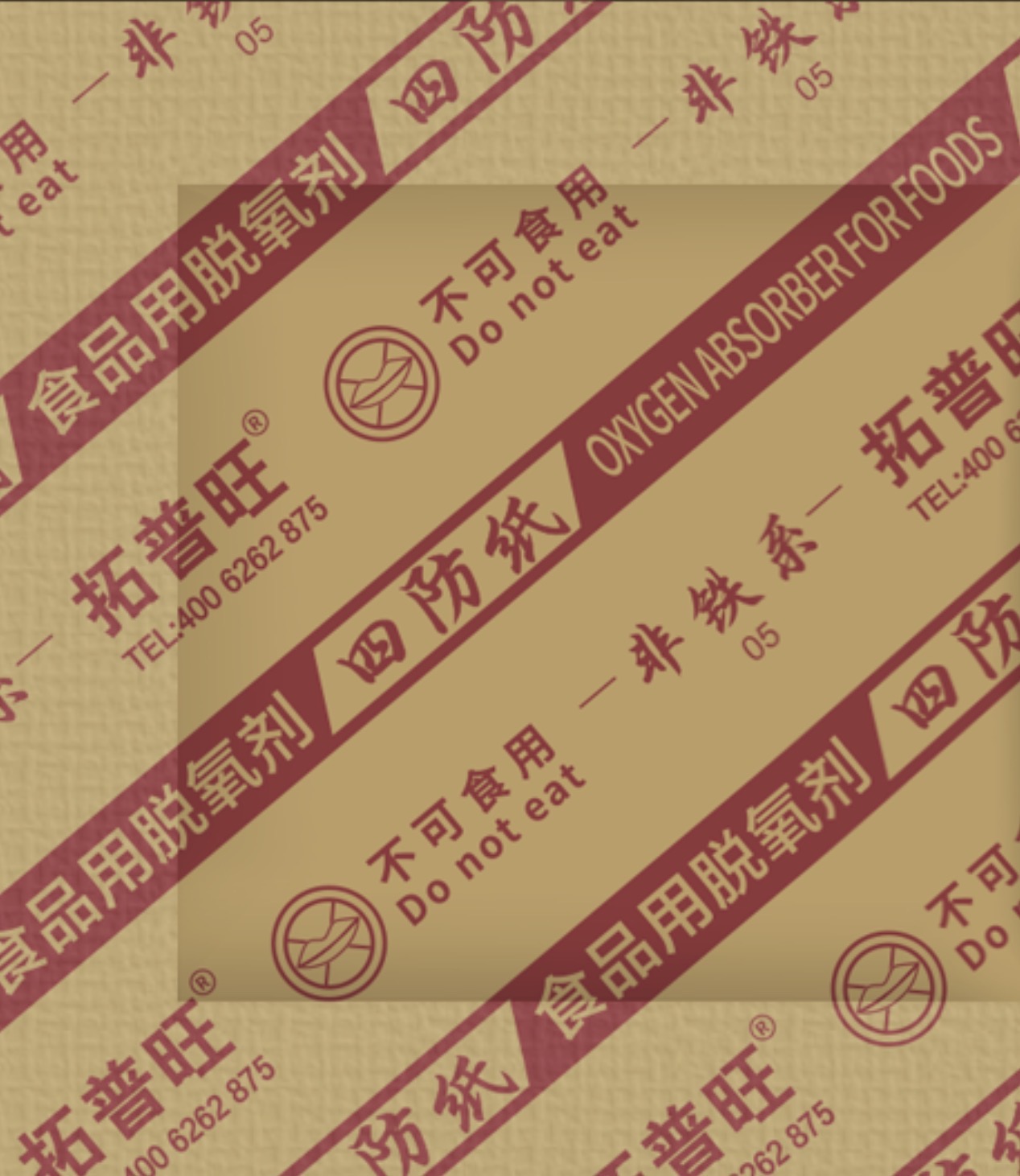 This oxygen scavenger releases an equal volume of CO_2 while absorbing oxygen to prevent package collapse (suction effect). It effectively inhibits the growth of mold and aerobic bacteria, preventing lipid rancidity and vitamin loss. Compatible with production lines equipped with metal detectors. The price quoted is based on an MOQ of 10,000 units.