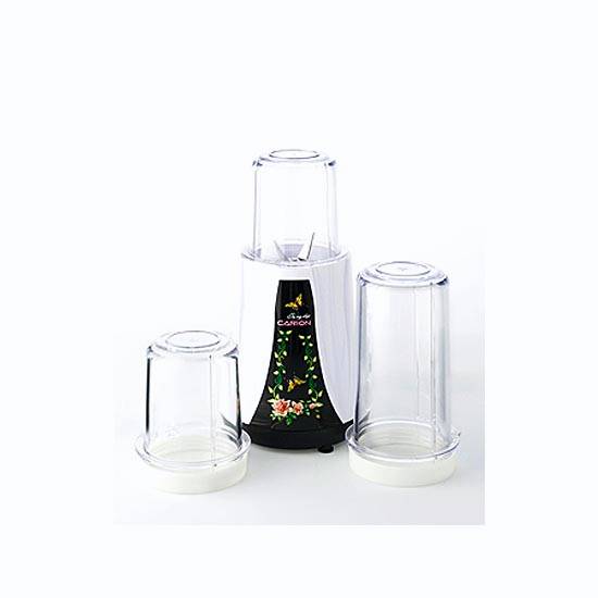 The contemporary food mixer showcases a classy housing with eye-catching floral patterns. The robust blades help enhance the food mixing process. Three transparent cups of different sizes are included for performing various functions.