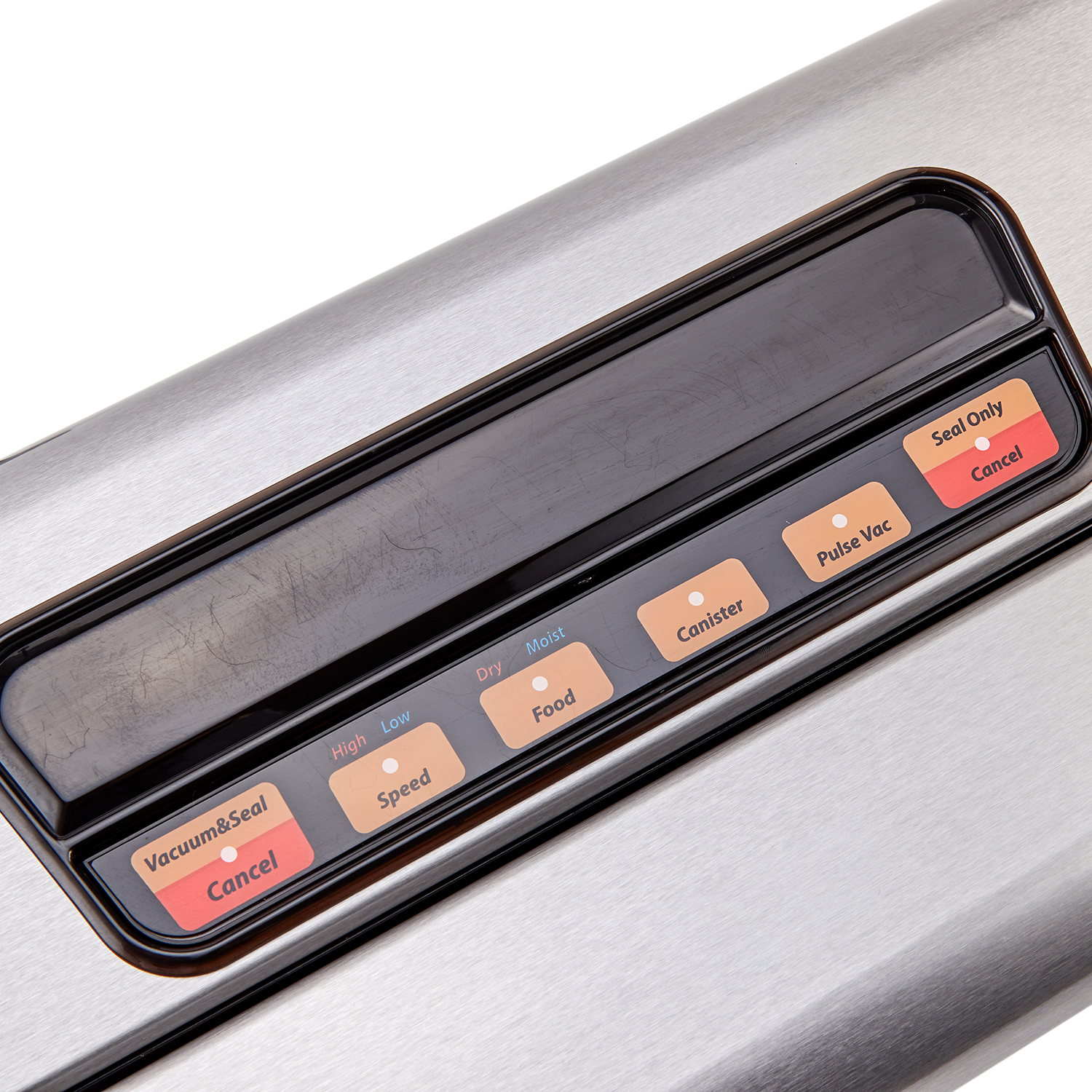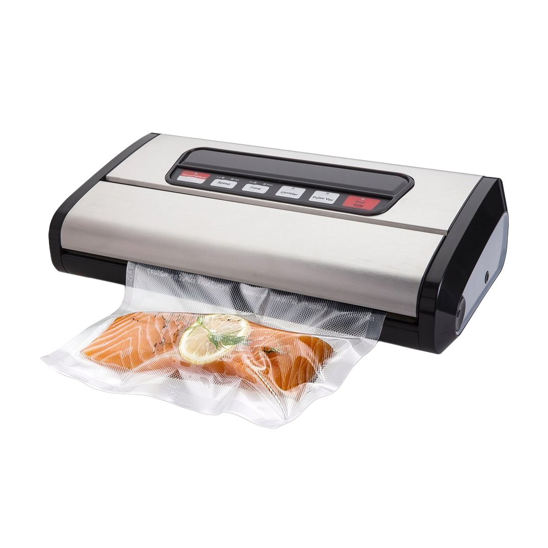 Sealing the food inside the plastic bag, this food sealer machine can deprive the food of oxygen and effectively increase food shelf life. It is designed in a dual pump to ensure more stable functions and faster vacuum speed. This vacuum sealer also can seal normal bags, such as the packaging bag for potato chips