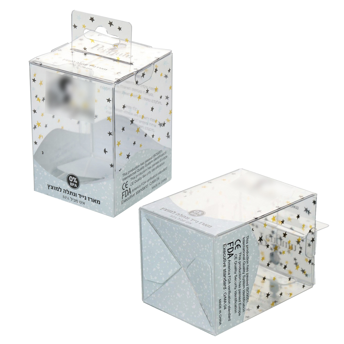This PET packaging box is designed for child utensils. It is made of safe food-grade plastic sheets and comes with a convenient hanger, providing clear display, reliable protection, and easy retail placement for kids' tableware.