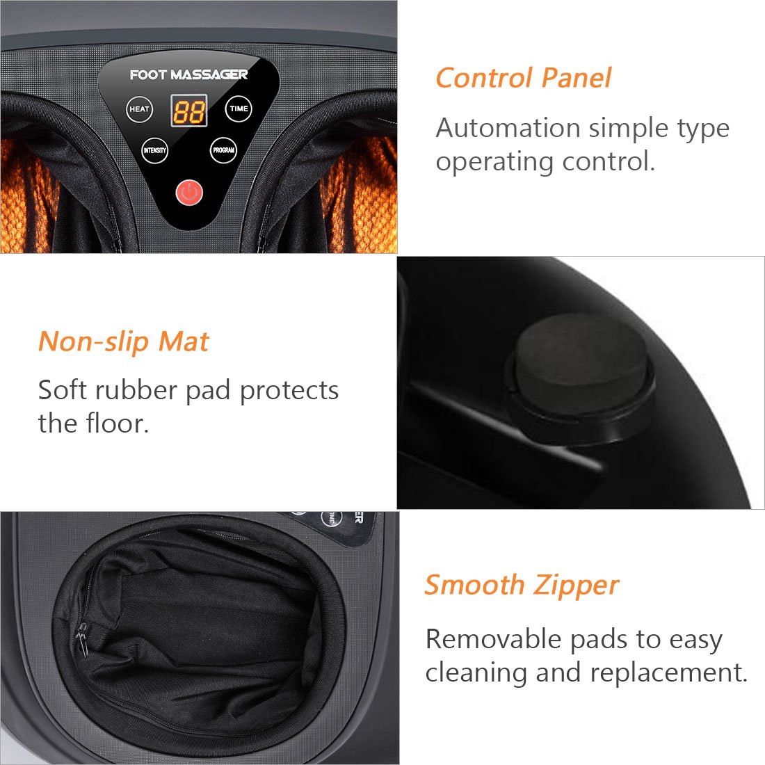 SOOTHING HEAT FUNCTION: It can reduce muscle tension effectively, relieve foot soreness and produce a relaxing massage effect. You can choose to turn it on or off at the touch of a button.
