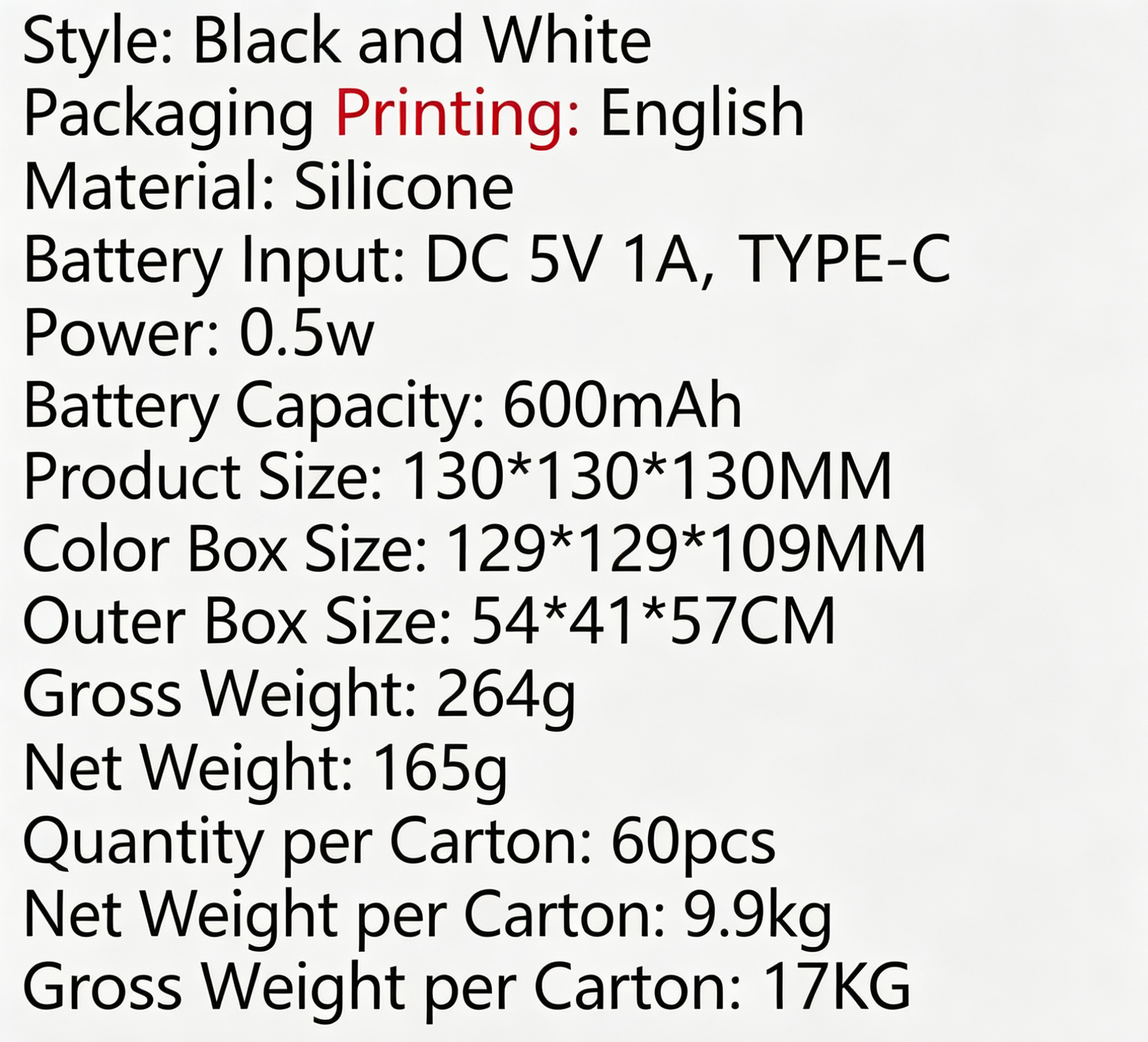 - Built-in 600mAh rechargeable battery with Type-C charging, low power consumption (0.5W)