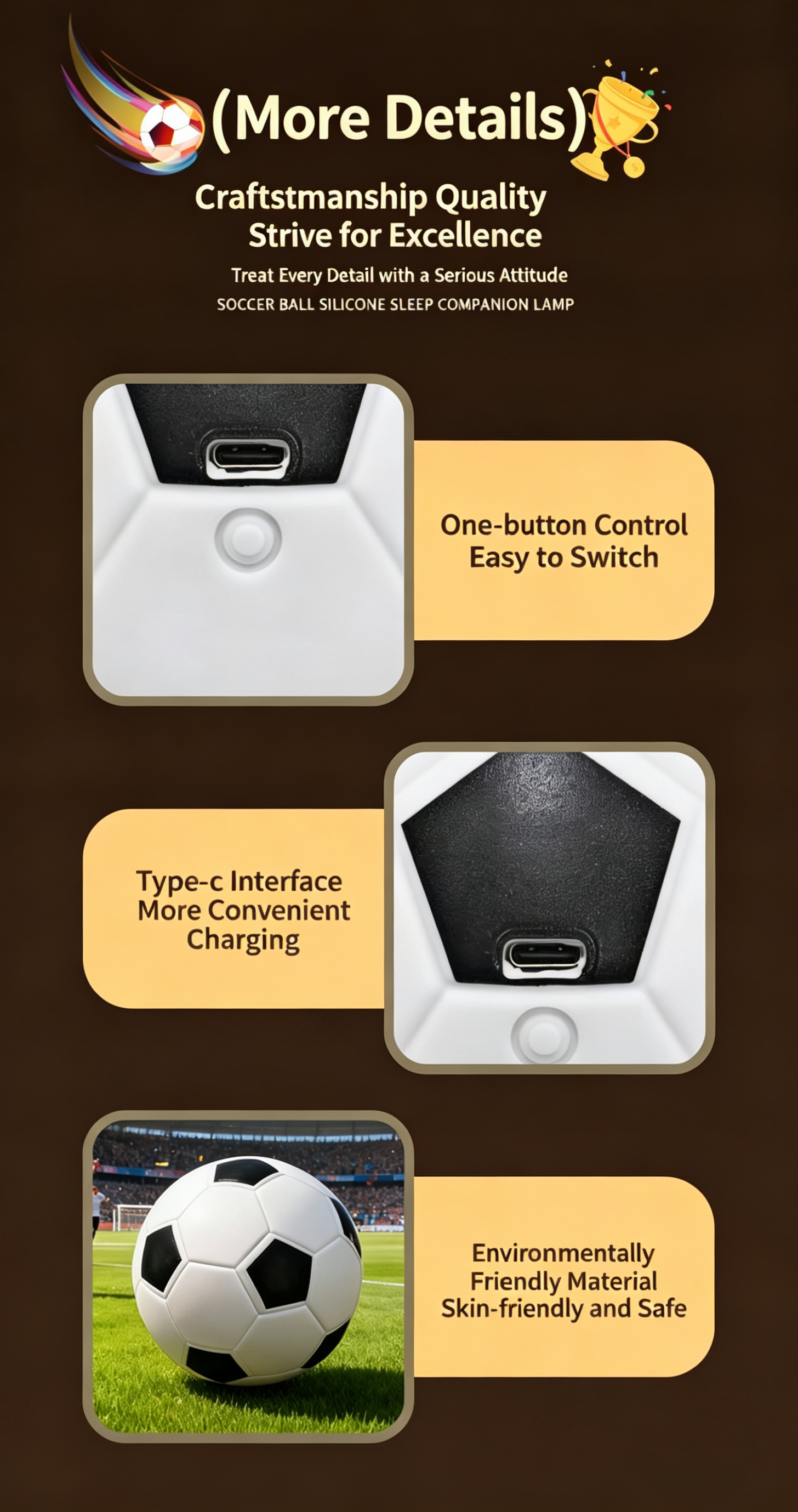 Whether you use it as a soft night light for kids, an atmosphere lamp for game nights, or a creative gift for birthdays and holidays, this soccer night light brings warmth and fun to any space.
