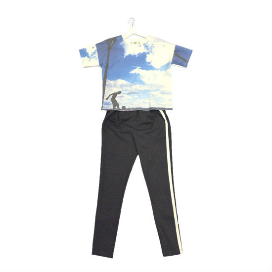 Football Sky - Grey Flexble Sports Pants, Print Short Sleeve Top