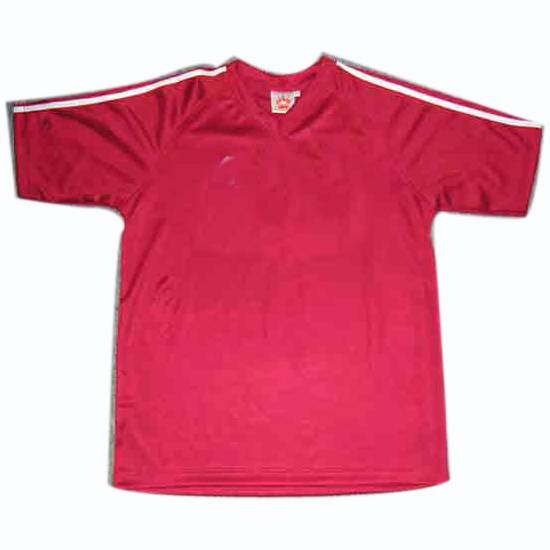 This soccer T-shirt flaunts a succinct design. It comes with a plain color with a V-neck for a unique style. The shoulders come with embellishing straps extending to the sleeves. This T-shirt makes a comfortable piece of sportswear.