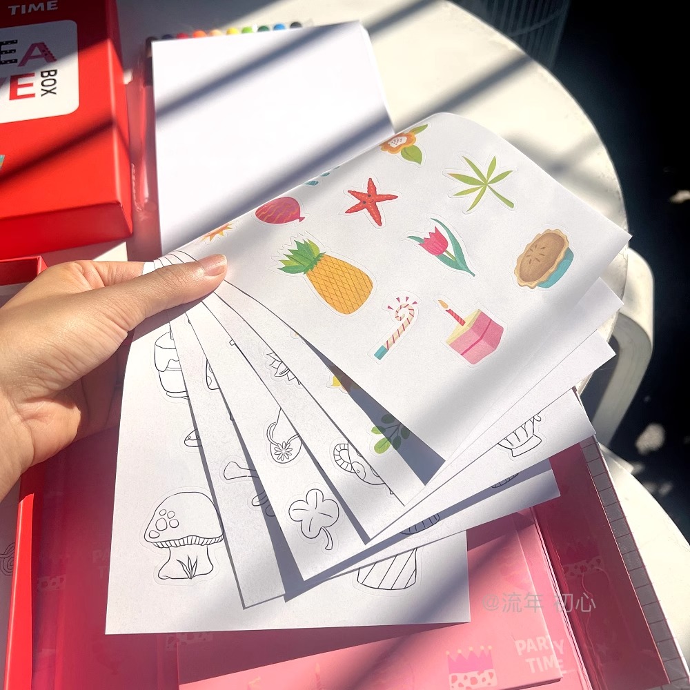 Sticker Coloring Book (1 pc): A5 size with 20 themed pages (e.g., forest, space) and 50+ stickers, 120gsm matte art paper for ink resistance[citation:12][citation:17].