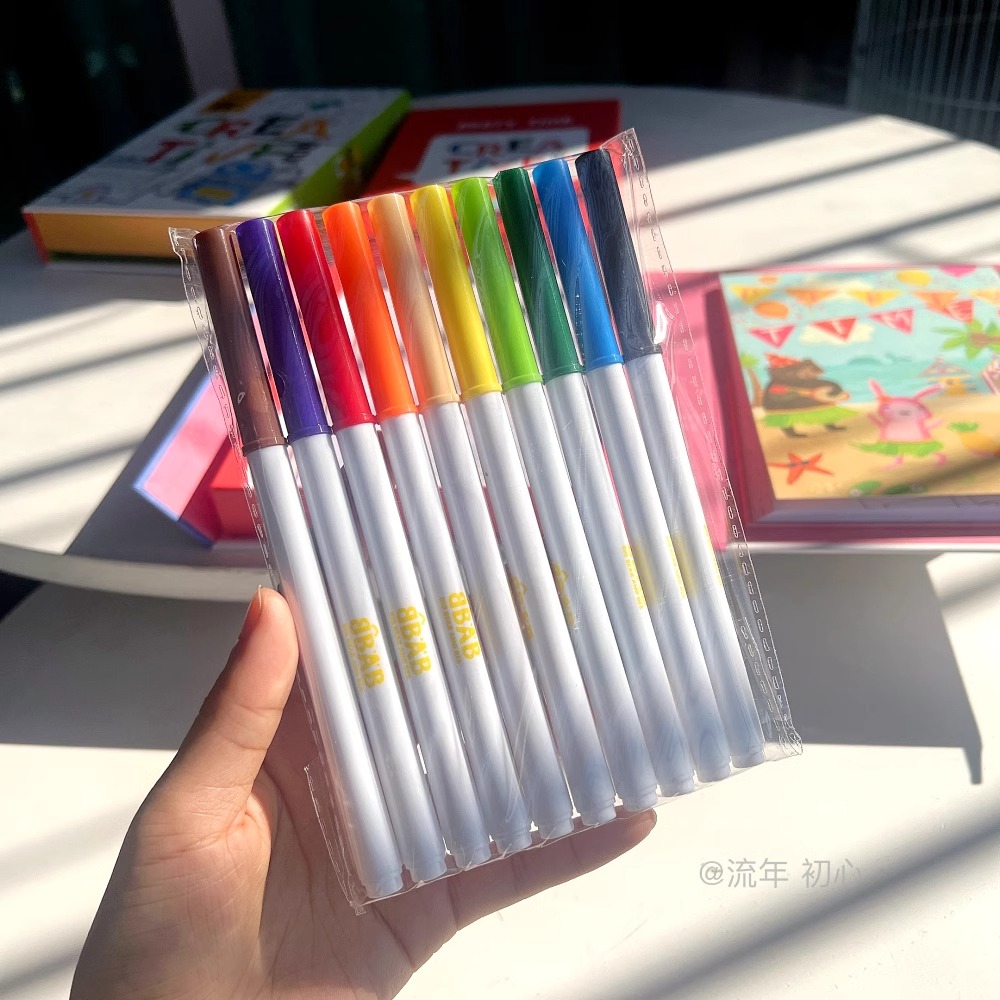 Watercolor Pens (12 colors): Triangular PP plastic body with washable ink and child-safe tips[citation:3][citation:15].