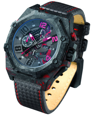 • Gents sport watch in forged carbon fibre material, Swiss automatic chronograph movement.