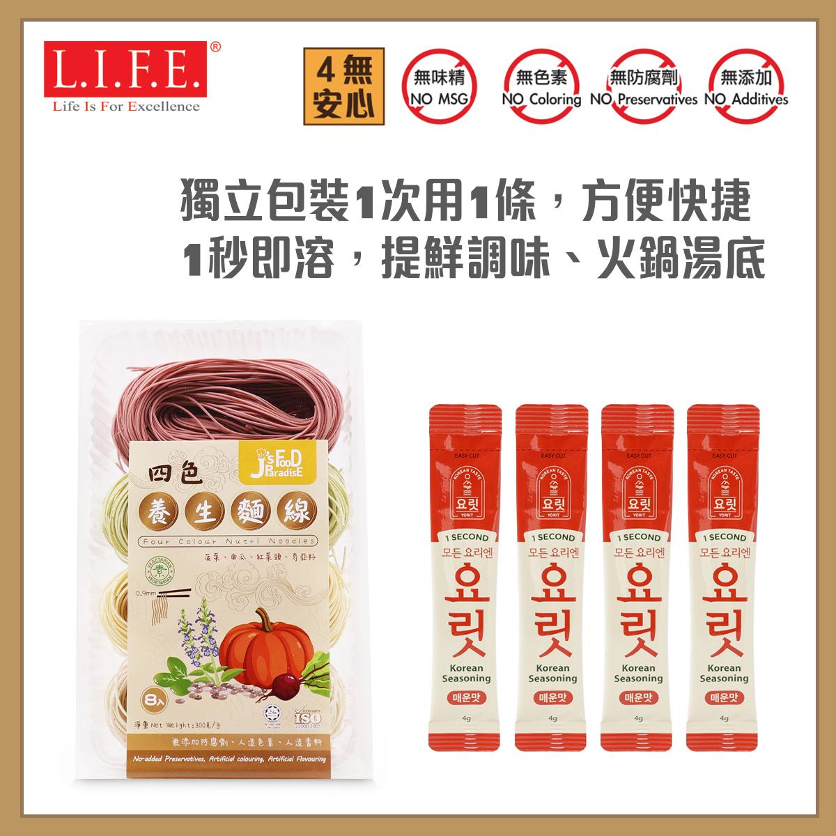 Four Colours Nutri Noodles (Brown) 300g + Korean 1-second Seafood & Veggie Broth 4g x 4 (Free Korean Recipe)