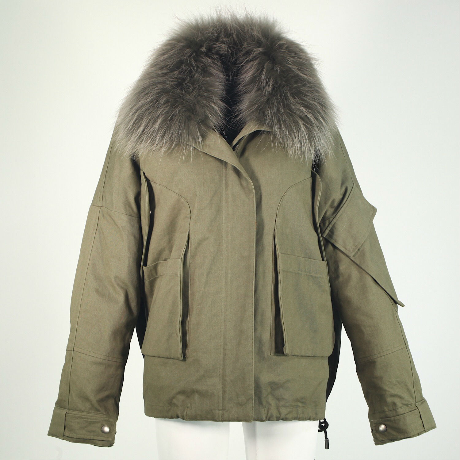 • Featuring Neckline in fox fur, and metal zip fastening in the front.