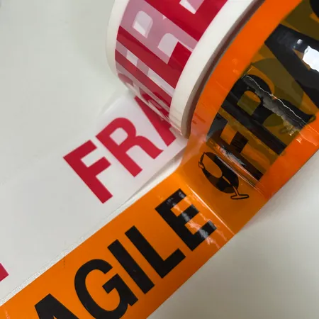 Fragile tape is a specially printed packing tape with clear, bold messages such as “FRAGILE,” “HANDLE WITH CARE,” or “GLASS.” It serves as a visual warning for carriers and warehouse workers, reminding them to handle packages carefully.