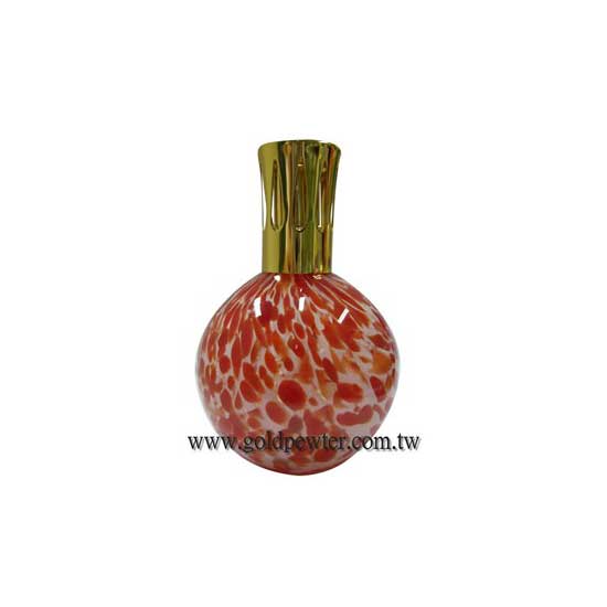 This fragrance lamp boasts an elegant design. The spherical fragrance container is adorned by irregular painted patterns. The golden aroma burner radiates extra elegance.