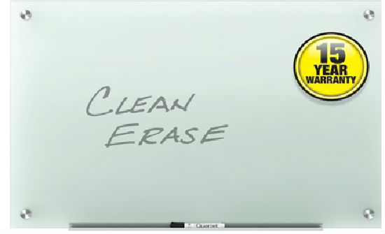 Tempered glass dry-erase marker board with 15 Year Warranty will not stain, ghost, scratch or dent; ideal for heavy use in spaces with moderate traffic; 4'W x 3'H.; marker tray is included