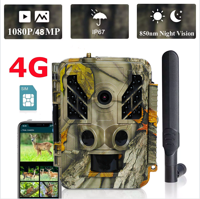 Thank you for choosing our high qualified 4G hunting camera. This camera is a digital Trail camera with 4G communication function. It is an infrared surveillance camera, triggered by any movement of human or animal monitored by a high sensitive Passive Infrared (PIR) motion sensor, and then automatically captures high quality pictures or records video clips . 4G model sends picture instantly to APP.You’ll be alerted when the camera is triggered or settings by user.