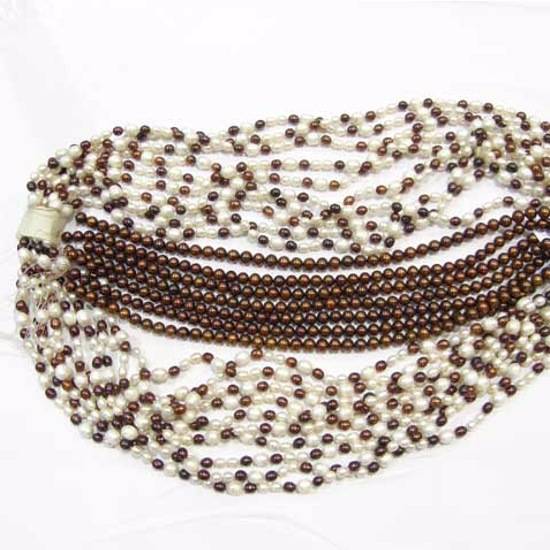 These are strings of pearls that are cultured in fresh water. The different kinds of shapes give a great variety of styles for making jewellery. They are available in a wide range of sizes and colours including natural-coloured, white, red, blue and others.