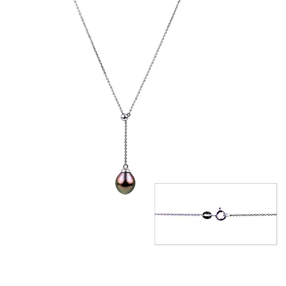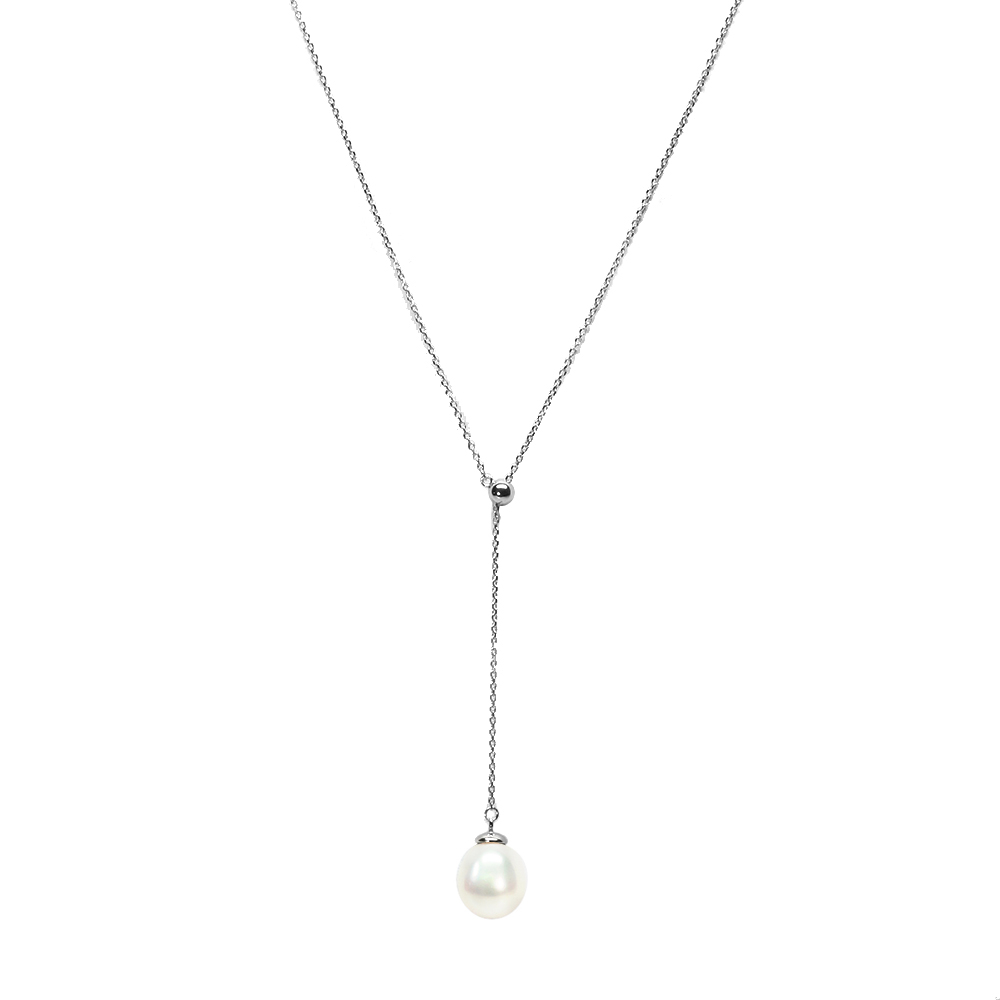 • 9-10mm Fresh Water Pearl Drop "Y" shape movable silver bead Necklace.