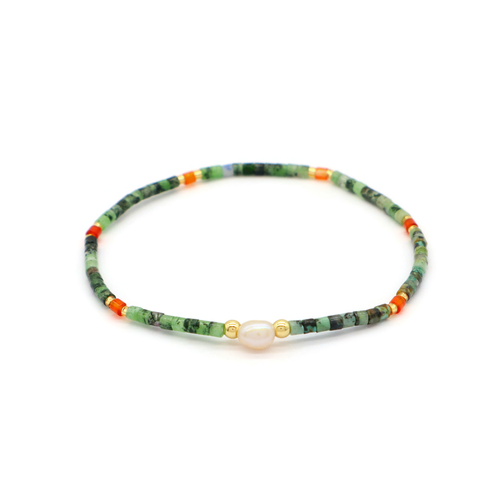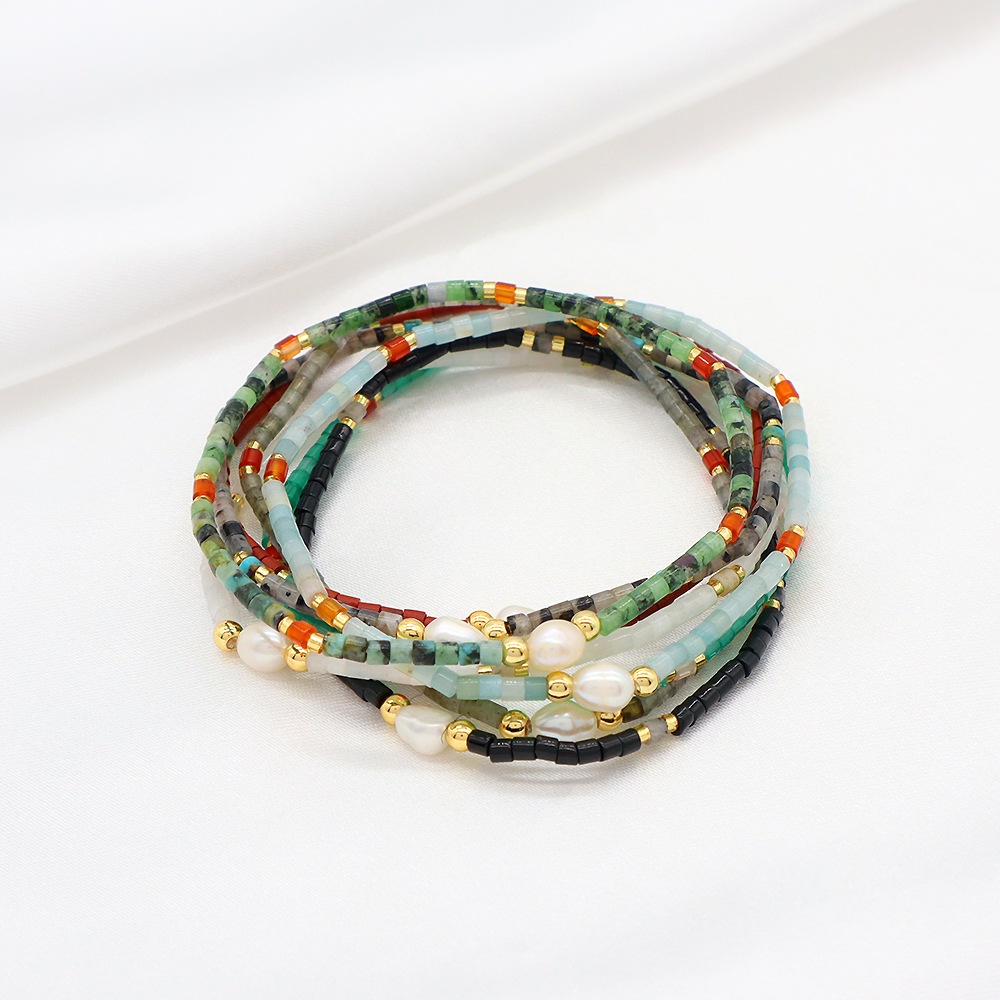 Natural Stone Beads + Miyuki + Brass Beads + Fresh Water Pearl