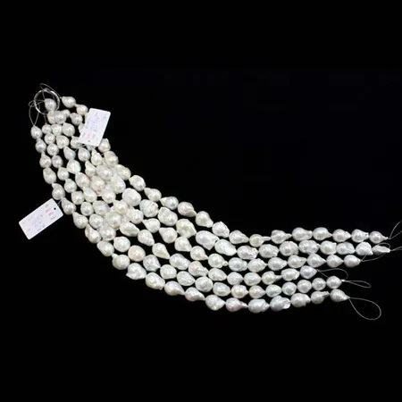 These are freshwater pearls in a baroque-shaped design. The pearls come in white color with exquisite polished details for enchanting shine. These freshwater pearls provide an elegant way to enhance your fine jewelry.