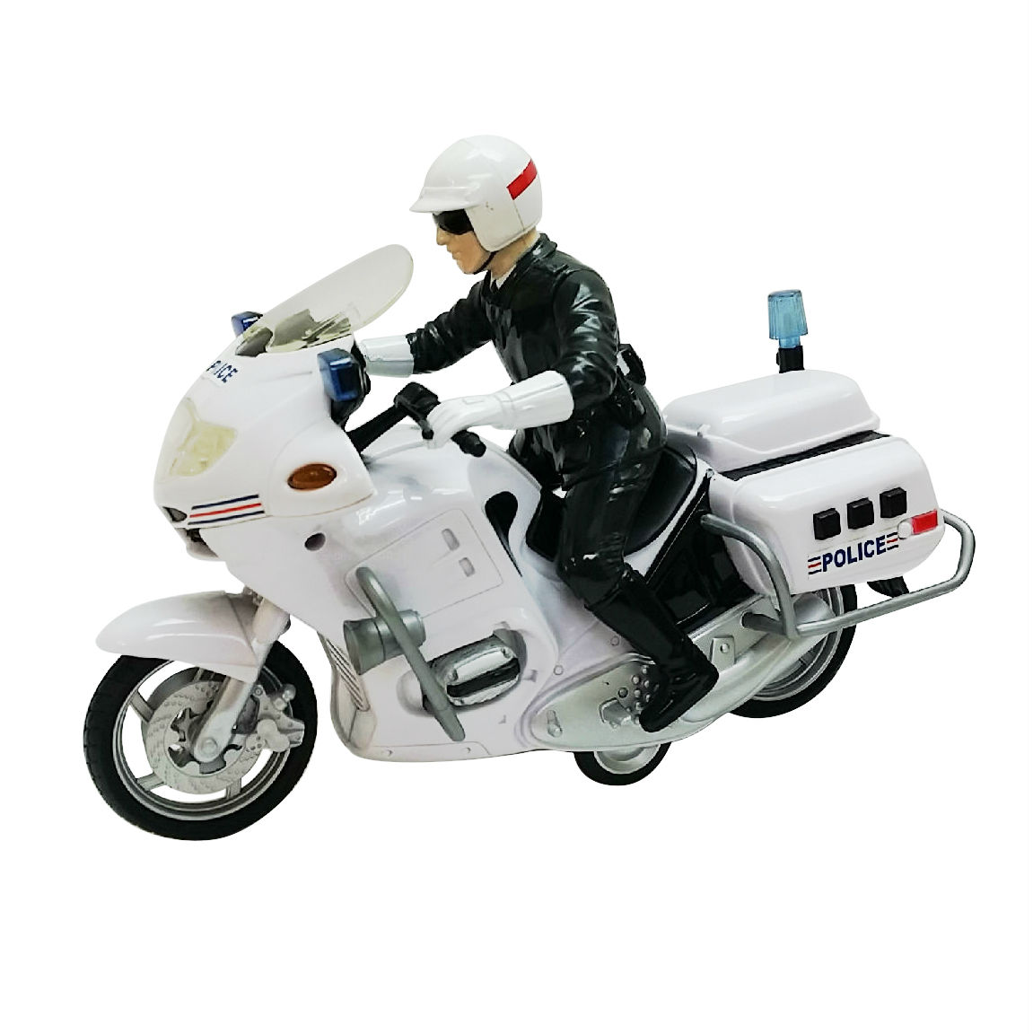 - Motorbike: textured wheels, siren light and authentic labels.