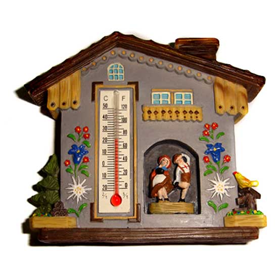 Featured is a fridge magnet thermometer in the look of a retro house to flaunt an antique style. Each part of the house is finely painted to create a delicate picture. This fridge magnet with thermometer is a brilliant idea to decorate a fridge door.