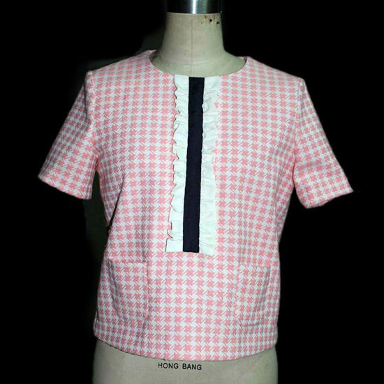 • Jacquard fabric, loose fit, frill and pockets detail, metal zipper at cb ; 55% polyester 45% cotton