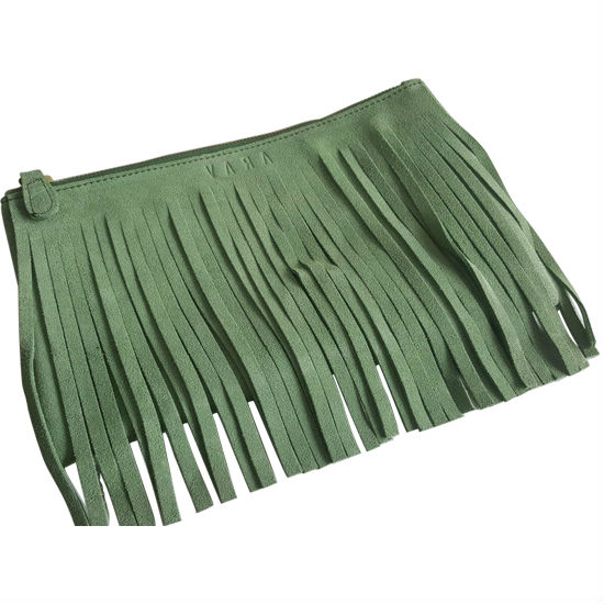 This clutch bag is crafted in smooth suede leather with flowy fringe accents. This compact piece boasts just enough room for all your essentials – wallet, cell phone and cosmetics. This fringe clutch bag will definitely become your go-to handbag for your daily commute.