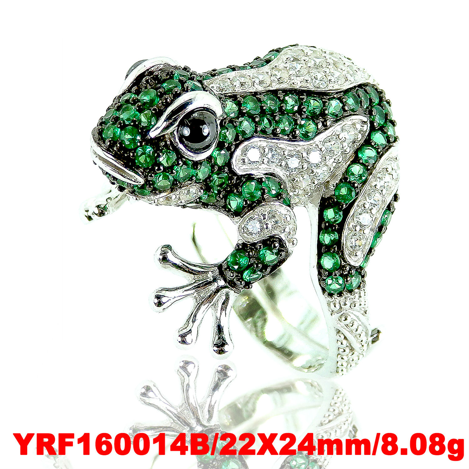 Frog Pave Multi Color Silver Ring