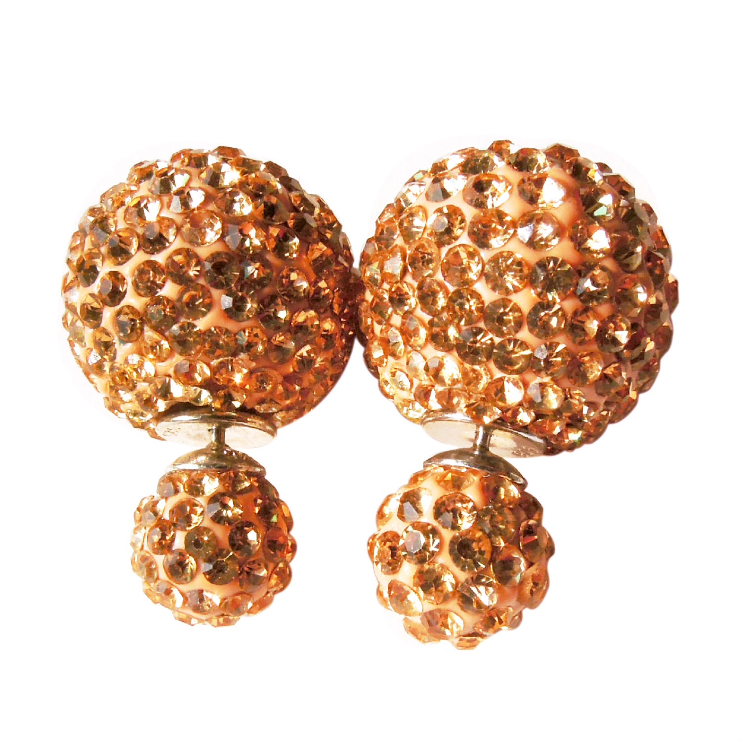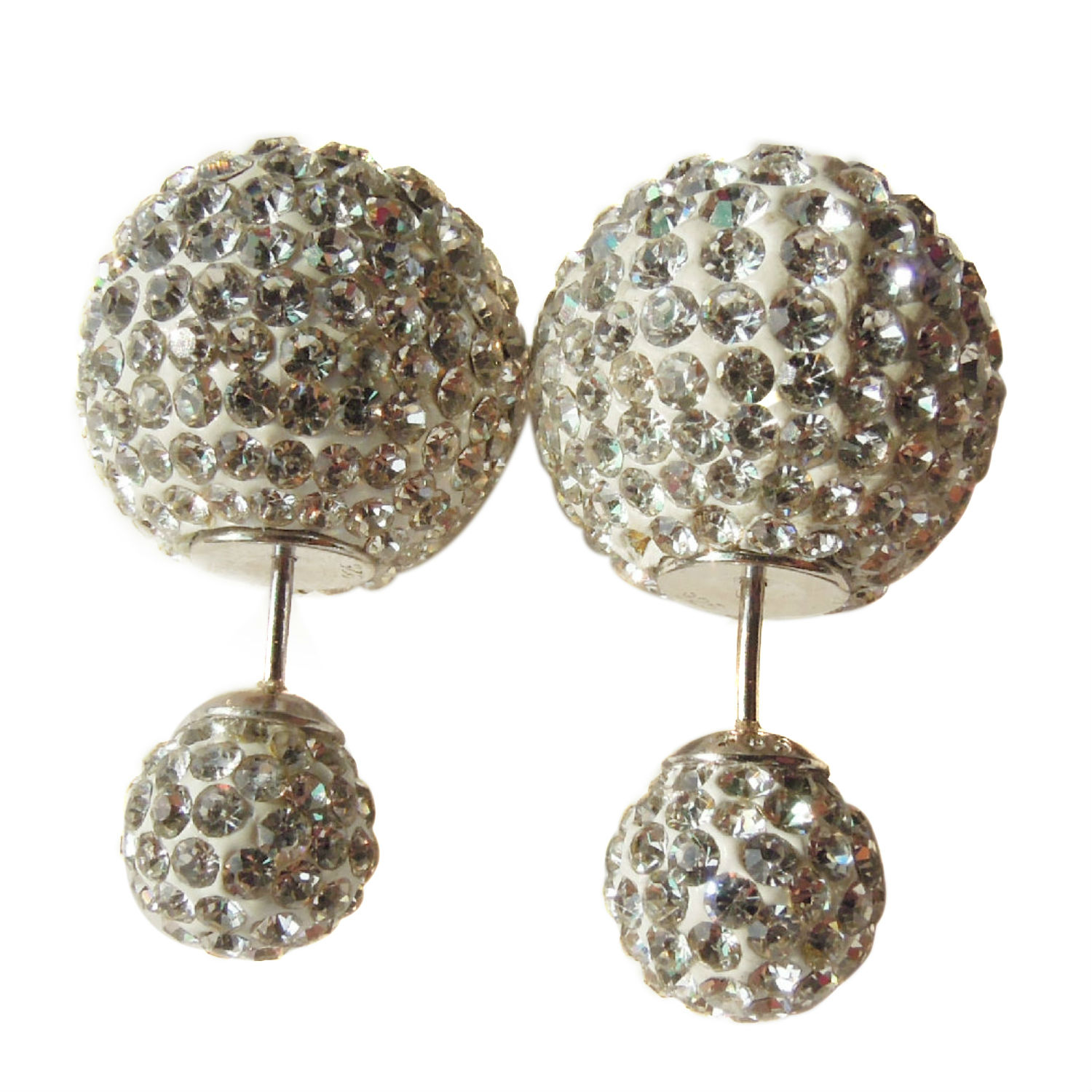 Featured here is a popular front and back stud earring given in a wide range of colors. These bright earrings will draw onlookers’ eyes with their large and small colored crystal balls. Manufactured with 925 silver stud, this earring is definitely great for people with sensitive skin.