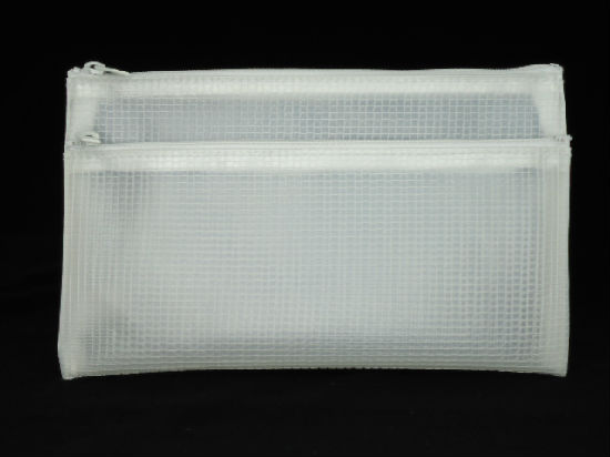 • Frosted jelly with mesh backing medium cosmetic bag.