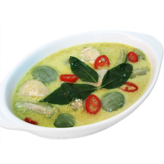 Prepare the traditional Thai dish quickly and easily in your own kitchen with this green curry meal kit. Made from authentic ingredients, this meal kit features chunks of tender chicken with green curry sauce along with fresh herbs and spices. The combination of the sweetness of coconut milk, the spice of fresh green chili and the fragrance of the herbs bring you a wonderful mixture of flavors. Simply add your favorite meat and vegetables to make an enticing authentic Thai cuisine.