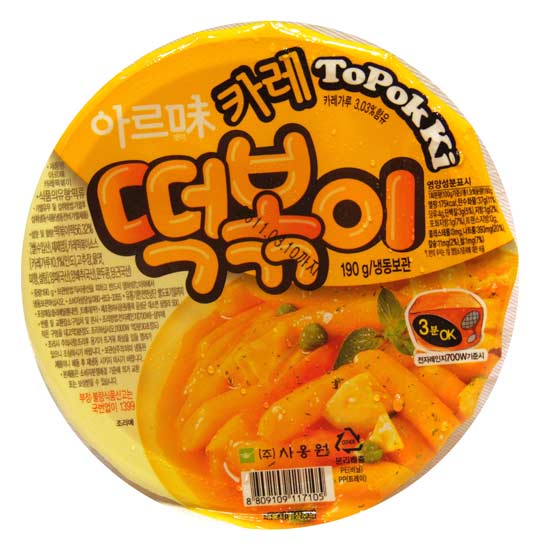 Highlighted is a pack of instant rice cake in Korean style. The rice cake is sliced into mini tubes for a soft and elastic texture. The rich curry flavor makes the rice cake exceptionally attractive.