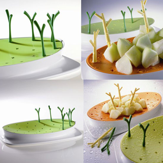 Presented here is a novelty dish set that is specially designed for presenting fresh fruits in a dainty way. Branch-like forks are included in this set of products. The food-grade ABS construction, making this fruit dish safe to use.