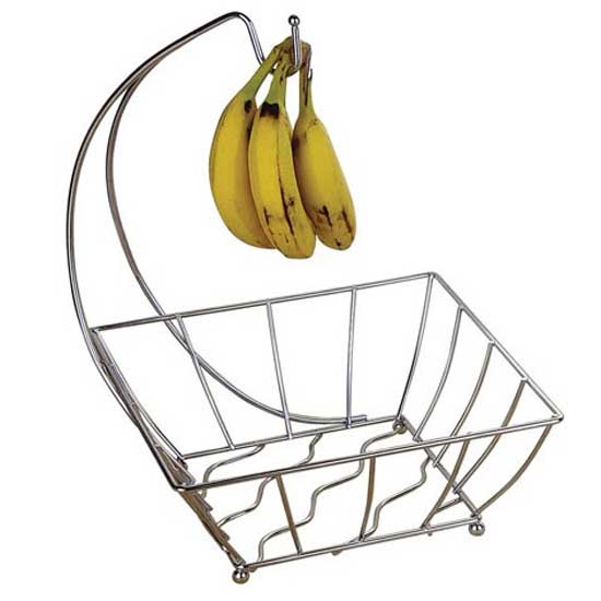 This fruit holder is made of top-quality and polished metal material for the longest serving time. The modern design allows you to hang bananas on the top while placing other fruit in the basket. This fruit holder is a nice addition to extravagant and bold households.