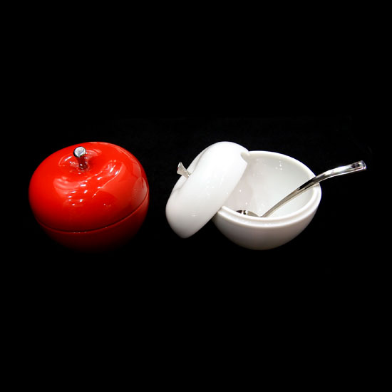 This set of salt containers features the shape of a red apple and a white pear for an adorable look. Vibrant colors bring a lively touch to your kitchen. This gorgeous container set is ideal for containing salt, pepper and mustard.